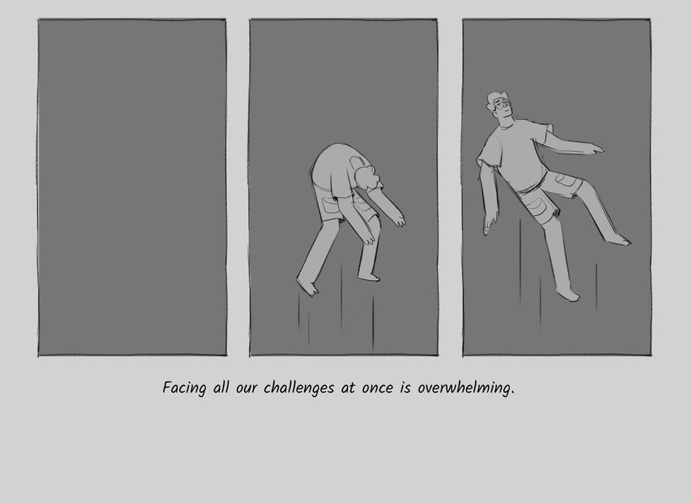 The initial frames were designed to visually illustrate how each situation could be experienced in a negative as well as positive light. We used a vibrant palette with soft hues to create a relatable but hopeful atmosphere that would resonate with the viewer.